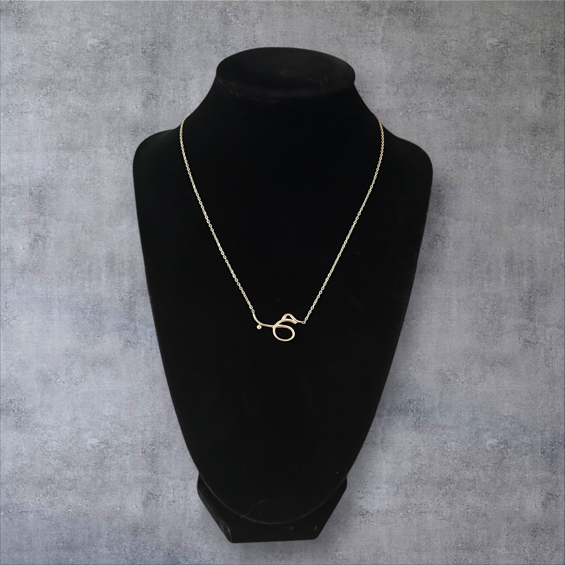 Expertly crafted with precision, the Hob Calligraphy Necklace is a stunning piece made from durable stainless steel. Featuring a beautiful calligraphy design that symbolizes "love", this gold necklace measures 8.5 inches in length with a 2 inch extension. Elevate your style with this timeless accessory.