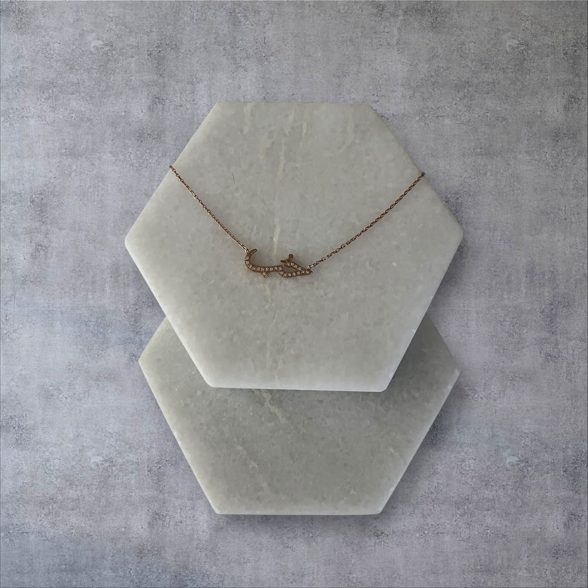 Introducing the Hob Rose Gold Necklace, a stunning piece crafted with stainless steel and a 1.5in extension for a customizable fit. Designed with a length of 8in, this necklace represents love, as "hob" means love in Arabic. Make a statement with this unique and meaningful piece.